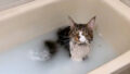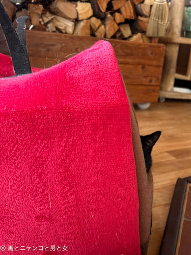 ねこ画像テレビ型ベッドから飛び出してる黒いもの。