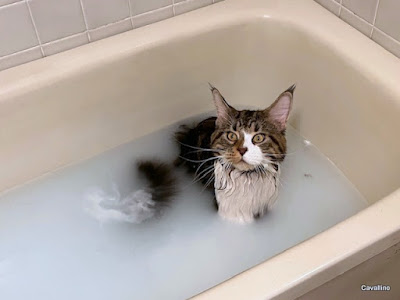 <はじめておいでの方へ>メインクーンキャッテリーCAVALLINOへようこそ。日々の出来事や子猫情報などを綴っています。大家族ですので、わが家の家族紹介No.1とNo.2をご覧下さい。ペトハピ 太鼓判ブリーダー に掲載されました。クリックすると見られます。SNSに「猫のシャンプーは必要ない」とかあった。まあ、猫と言っても色々な種類がいるし。長毛で去勢避妊していないわが家は、シャンプーは必須。しないとベタベタで毛玉だらけになってしまう。特に男子は。女子は3か月とか半年おきで大丈夫ですが。さあやるべき事をやらなくちゃ。本格的に寒くなる前に全員洗うぞ~!dinoの悪い癖が出ました。アメちゃんたちを洗って「シャンプーの神様降臨」空の場合はこの可愛い姿が見たくてしょっちゅう洗っちゃう。慣れてきてゆっくり湯船につかっています。きれいに仕上がったけれど・・・・・あれ?冬本番なのに毛が短くなってきた?2か月前の写真は・・・・・首回りがもっとあったなあ。本来はこれから毛が伸びるはずなのに・・・・性格と一緒で毛まで天邪鬼。そしてサファ・・・・・・夏でも冬でもぼーぼー。マルガリータしてもすぐ復活する。「もうしばらくいいからね」サファを迎えに部屋に入ったら、空が逃げて高い所に。野生のカン当たらなかったね。君じゃなくてサファだよ~。さて、次なる犠牲者は・・・・・・