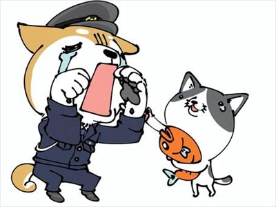 ご存じ童謡 「いぬのおまわりさん」※ ご存じない方のため、YouTubeは → 例えばこちら、歌詞は → こちらお巡りさんと迷子ちゃんの立場を逆転すると、こうなる。こういうイラストが見つかったのだが、見つけてしまう私は、なにかおかしいような気がする。ま、気を取り直して いつもの替え歌いってみよ~『いぬのおまわりさん』♪ まいごの まいごの おまわりさん♪ あなたのこ~ばんは どこですか?♪ しょかつをきいても なくばかり♪ しょぞくをきいても わんわんわん♪ わんわんわわ~ん わんわんわわ~ん♪ ないてばかりいる おまわりさん♪ ねこのおじょうさん♪ こまってしまって♪ にゃんにゃんにゃにゃ~ん にゃんにゃんにゃにゃ~んみう 「けいかんなら むせんをもってるですぅ」りん 「じんせいがおわるようなしっぱいをやらかして」 「ごうきゅうしてるみゃん」冷静なツッコミをありがとう。無線があれば迷子になっても誰かに連絡は取れるだろうがそれすらせず。警官が 「人生が終わるような失敗」 をすれば影響は甚大でそりゃ、泣くしかないよな。迷子の子猫も泣き止んで、心配もしようものだろう。