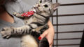 お母さんがデコレーションした箱に埋もれてくつろいであげる猫