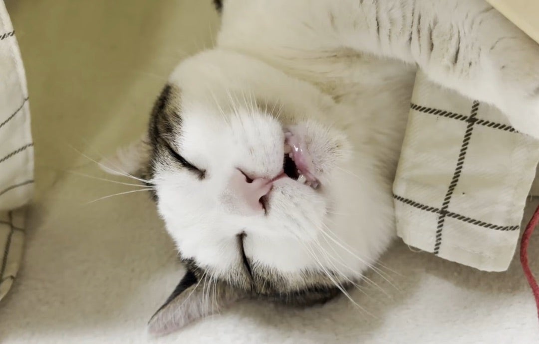 こんばんは。お母さんです。久しぶりでした。このアホ面w幸せそ~うなwめっっっちゃ可愛かったですむにゃむにゃと、多分夢の中でちゅーる食べてるのかな?特に何かしてくれる訳ではないけど、起きるきっかけは何なのか、見守りました。子猫の時なら多分、あの位の事では起きなかったと思いますが、今はもうやっぱり、「俺?なんかした?」って感じだったのかもひのきのシャーは、十分目覚ましになったようです。が、自分が原因ではないと分かると、また目を閉じるオマメが可愛いです ポチッと応援宜しくお願い致します。