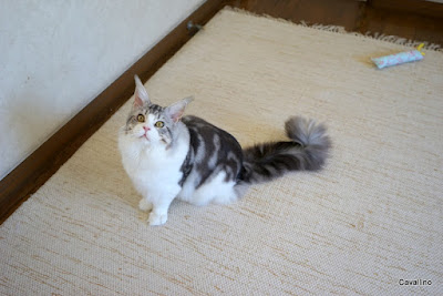 <はじめておいでの方へ>メインクーンキャッテリーCAVALLINOへようこそ。日々の出来事や子猫情報などを綴っています。大家族ですので、わが家の家族紹介No.1とNo.2をご覧下さい。ペトハピ 太鼓判ブリーダー に掲載されました。クリックすると見られます。遠い国から来てすんなり馴染んだタレンティ。でも、一人じゃやっぱり寂しいらしい。「アソボ」このごろ遊んでの要求がすごい。座ってテレビを見ていたら、後ろから抱き着いてきて・・・・頭をかじられた。いちおうタレンティの居場所は作ったんですが・・・・180センチ角ですから広い。でもね・・・・・「??」何だか扉を閉めたらかわいそうな気がして・・・・「イッショニハイロウ」しっぽフリフリしてdinoを呼びます。閉めて部屋を出たらがっかりするのはわかっている。オシッコするのはソファだけ。そこはペットシーツでガードしてあるし。部屋を出ようとするとこの表情。後ろ髪を引かれます。一緒に寝ると・・・・・ソファにおしっこしない。寂しいんだよね。誰かお友達になれる子を考えようかなあ。子猫を連れてくるかなあ。 ランキングに参加しています。バナーを2つポチッと押していただけると嬉しいです。頂いたコメントは楽しく拝見させていただいております。ブログを書く励みになっていますが、個別にお返