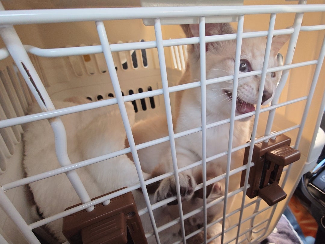 いつもご訪問&応援ありがとうございます♪ 昨日はお届け2件行ってきました!平日にお届けハシゴするのは初めてじゃないかなぁ。 まずはツヴァイからなのですが‥「みんなでおでかけわくわくでちね!」 渋滞もものともせず、ひとりずっと起きて騒いでた‥ 「なんかいったでち?」 いえ、何も。 到着してキャリーから出すと‥ 抱っこも余裕。 ケージをよじ登ってみたり‥ じゃらされてみたり。 どこにいるかな~? 「ここでち!」 ツヴァイの性格も環境も、トライアル要る?なよくあるアレ。でも里親さん猫と暮らすの初めてで、飼育本にある「ケージから出さない方がいい」を実行される予定だったようで、そこは全力で否定してきましたw甘えん坊なのでたくさん撫でて遊んであげてください、って。お部屋もとっても暖かかったし、心配な点も無し。 さっそく空の食器ひっくり返したりはしていたけども。「?」 里親さんカップルは、譲渡会で悩んで迷って「1度外でお茶でも飲みながらお話して、『やっぱりあの子!』って子がいたら17時までに戻ってきてください♪」とお話したら、本当に戻ってきてくださいました。この子"が"いいっていうおうちに託したい私としては、とても嬉しいご縁。 自ら保護する、友人知