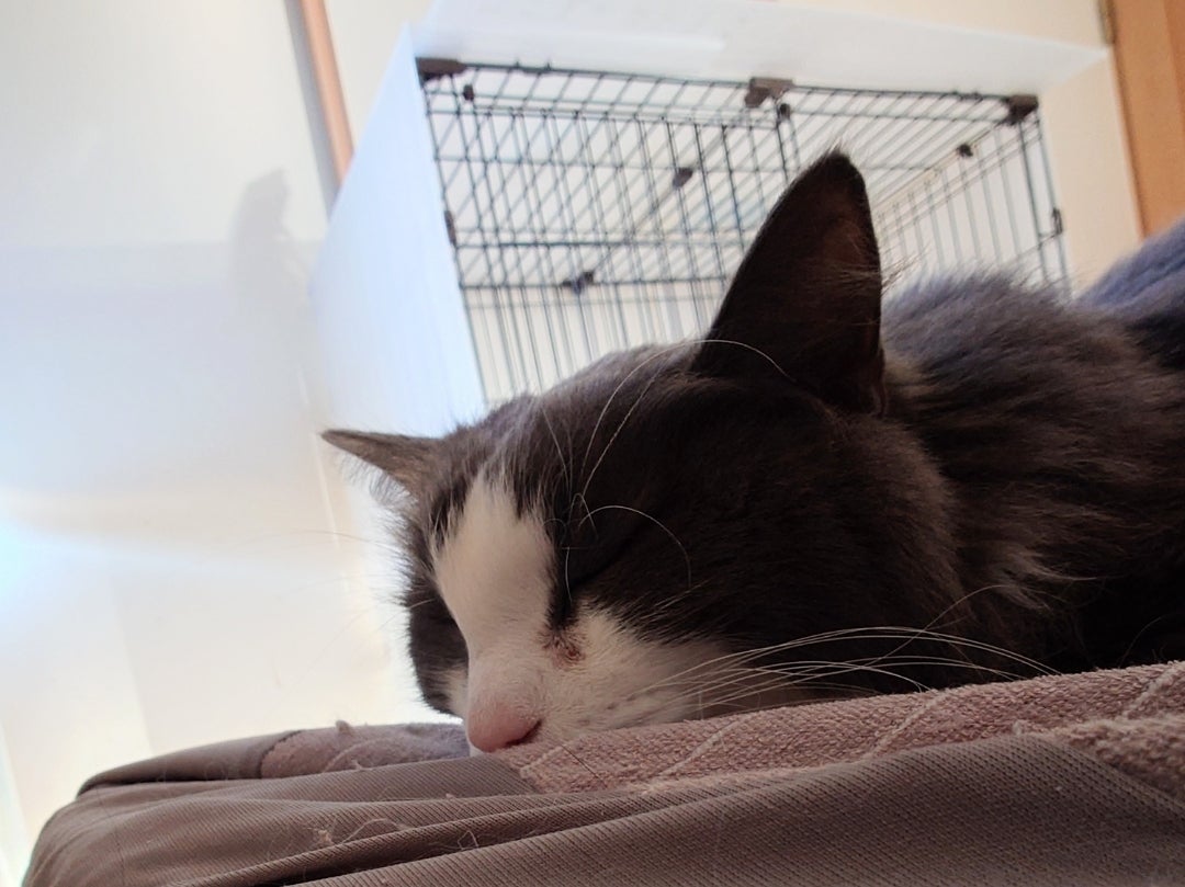 いつもご訪問&応援ありがとうございます♪ 今朝、久しぶりに"朝起きると視界に猫がいる"を体験。( ˘ω˘)スヤァ 昨夜の就寝時、ご機嫌でフミフミゴロゴロうろうろフミフミゴロゴロうろうろフミフミゴロゴロ‥ お布団入る?って誘っても入らないし(知ってた)、撫でてたけど腕出してると寒いので引っ込めていつの間にか寝落ちして、朝、アラーム鳴ったら↑の画像の位置に。 お部屋を移動してもらってからはベッドの下に隠れたりもしていましたが‥ 「お布団って最高よね!」 日差しがあるとわりと室温が上がるので‥ちょっとクールダウンに上がったのかと思ったら‥ 寝た。 日が暮れるとまたお布団へ。( ˘ω˘)スヤァ のびのび過ごしていらっしゃいます。 ケージがあるのは、布団に粗相をするとオットに言われていたからなのですが、粗相は無し。トイレをちゃんと使っています。 猫の粗相って大きく3つの理由があって、①嫌がらせ②尿路疾患・腎疾患など③トイレを使いたくない 魔王ちゃんは私の猫になってしばらくは③でした。これは無知だった私のせいっていうのもあって、でも、自分も使う場所は汚したくない派で、犬のトイレ、洗面台やシンクなどツルツルした場所をトイレにしていました。 同じ③でも、トイレを使う意志