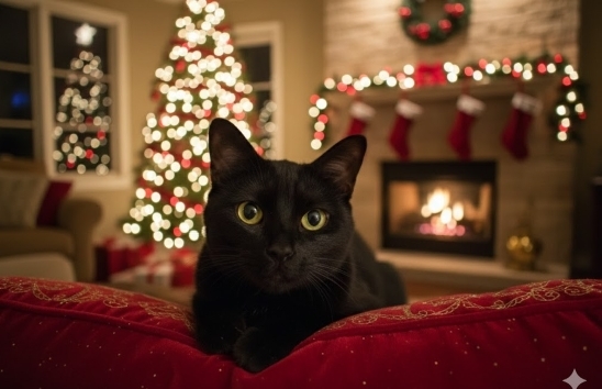 下はchatGPTじゃなくGoogle Geminiで画像作ってみました。クリスマス風なクーちゃんです。可愛いな。タマさんは画像はそのままでバーに居てクリスマスの雰囲気でってお願いしたら手が変だったり後ろに小さいタマさんも居るけどwぷぷの事ご心配有難うございます。月曜は調子上がった?って思ったらやっぱり昼からまた食欲ダウンでなかなか食べず…なんで!と泣きそうに。オヤツ系を数時間ごと舐めさせて・・・目薬して拭く前ってこんな感じなんですよ↓夜中は自力でウェットを少量ですが食べだし朝は顔つきが良くなりまた天袋に自力で行ってくれました。ホッ。ご飯は(朝と昼過ぎまで)いつものウェットをすんなりと食べてくれだして👏量も昨日よりずっと増えて行ってます。昼過ぎから下に降りちゃったけど、動かないって感じゃない様子で。ゴロゴロ言ってるし顔つきは悪くないですよね。その後また天袋に行ったりもして動きとかはいつもと変わらないくらいになりました。やっぱり夜になると鼻と食欲が落ちます。すんなりしっかり食べれる様になると良いけど。気温も暖かくなっていくみたいだから調子もぐんぐん上がって欲しいです。ぷぷにあげるちゅーるのオヤツをついついキッチンカウンターに置き忘れてたみたいで…バタバタって音がするので見に行くとあんこがちゅーる咥えて興奮してました(爆)殆どやられてた~~😨☆;+;。・