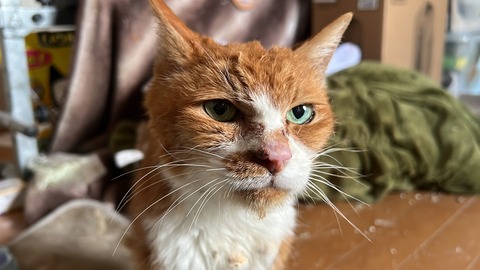 猫の記録は撮ってるんですがレギュラー組と預かり組で分けており、さらにレギュラーの中でも部屋別に分けてるので過去のことになると部屋単位でしか記憶がリンクしていません。そんな中、2024年から甘えるようになると共に命が萎んでいった女王猫・栗白。2024年に何があった?というと、三つほど大きな「猫のこと」がありました。ひとつは琥麦、もうひとつは栗白、もうひとつはいずれまた語る事になるかなと。リンクしてないので、栗白の病院搬送に失敗して前腕を噛まれて病院にいったのは琥麦がくる少し前だったなとか、暁璘の背中が黄ばんで洗ったのも栗白の闘病時期だったなとか、記録を見返して気づく感じですね。その中で、8月あたりから翡文が窓際にいることが増えました。栗白のケアもあって、どこか察したような気もしました。この窓際はチャー坊が最期の日々によくいた場所でもあります。釿汰は比較的そばにいて、栗白も自分のケアが終わると少し離れて休む感じでした。体を起こして甘えるのもかなりエネルギーがいるので、8月以降はその時間も割と短めでした。それでも栗白は引き戸の前まで出迎えるようにもなっていました。8月の下旬にこの虔燈&5代目胡晴の子猫兄妹が隣の部屋にやってきます。琥麦と子猫兄妹、隣の部屋では栗白と、やはり同時期に命が交錯していました。そういう意味では、今年も同じように命が交錯していた年でした。すでに里親募集を公開で行った