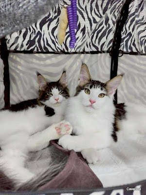<はじめておいでの方へ>メインクーンキャッテリーCAVALLINOへようこそ。日々の出来事や子猫情報などを綴っています。大家族ですので、わが家の家族紹介No.1とNo.2をご覧下さい。ペトハピ 太鼓判ブリーダー に掲載されました。クリックすると見られます。猫をキャットショーに連れて行く賛否は置いておいて・・・・・小さい子を連れて行くのは可哀そうってdinoも思います。でもね、慣らさずに大きくなってから出す方がもっと可哀想な事になる。とりあえず兄弟一緒だから心強いかなあって。まあ二人とも挙動不審になっちゃいました。オーディンとロキ兄弟でそっくりな「逃げ出す体制」手を放したらダッシュで飛んでいきそう。ロキの方がまだましでした。いちおうおもちゃにも反応するし。オーディンなんてリングの行き帰りずっと鳴きっぱなし。「救急車みたいな子」って言われてしまいました。遠くからサイレン(鳴き声)が聞こえて・・・・・・大きくなってまた去っていく(笑)でも、一生懸命頑張っていた姿を見てやって下さいね。年明けからまた・・・・行けるのかなあ?? ランキングに参加しています。バナーを2つポチッと押していただけると嬉しいです。頂いたコメントは楽しく拝見させていただいております。ブログを書く励みになっていますが、個別にお返事するのをお休み