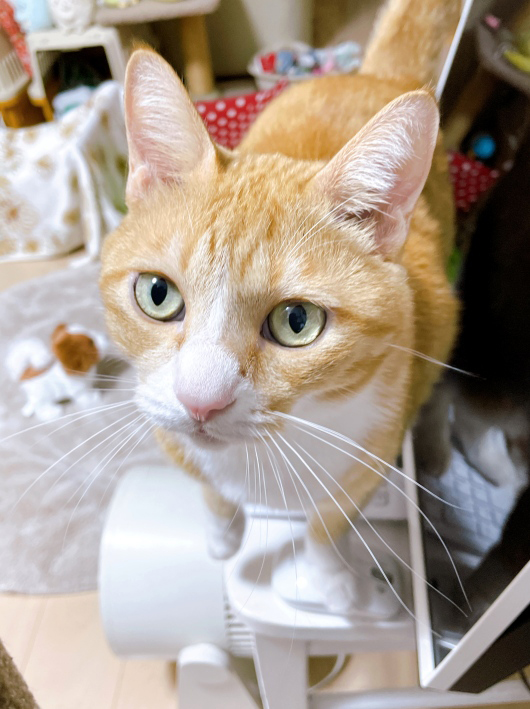 またか!注目されたくてキーボードの上を行ったり来たりした後マウスを踏んで、どや顔。つる~んとしそうでハラハラしちゃいますよ。( ̄▽ ̄;)