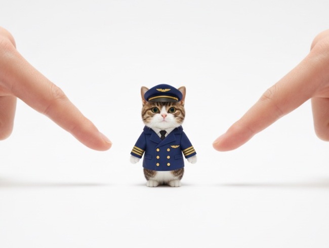 にゃんと!機長に昇格!?(制服のラインが4本に)なぜか愛用の爪とぎ台と共にびしっ!とポーズを決めるアミ機長。現実では衣装類は拒否するユウも生成AIなら副操縦士に変身。ボディは貫禄があるけれどなぜか副操縦士のままのユウ。(ラインが3本)指定していないのに何度やり直しても副操縦士になっちゃうユウなのでした。ブログランキングに参加しています。バナーをクリックして応援していただけると光栄なのです。