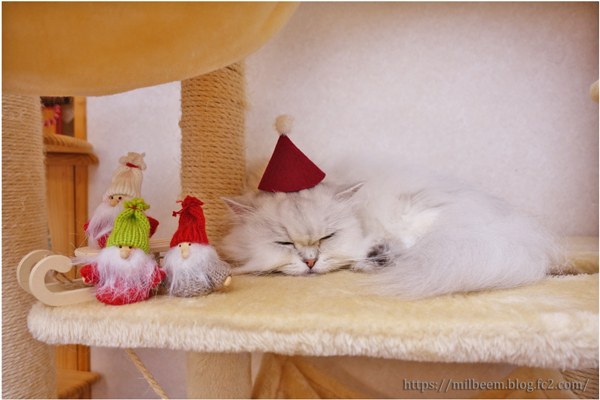 そ~っと帽子を取って、ミニサンタも片付けて、