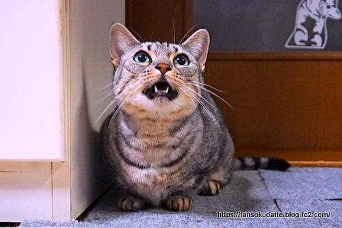 ルナが鳴いています。「お腹すいた!」って言っているのかな?ご飯の時間はまだですよ?主の動きをジッと見つめ続ける。まだ諦めてないようです。こちらをチラ見して「まだかなぁ?」って顔。鳴いてます。実は隣でツッチーも…そろそろご飯なのか?って顔してる。ルナにどうやらつられちゃったみたい。しょうがないなぁ…少し早めにご飯にしましょう!♥。・゚♡゚・。♥。・゚♡゚・。♥。・゚♡゚・。♥。・゚♡゚・。♥。゚♡゚・。♥。・゚♡゚・。♥。・゚♡゚・。♥。・゚♡゚・。♥ある日の出来事。まったりと平和な時間。主はPCに向かって編集作業中。反対を向いていたので、監視カメラの映像ですが、静かに動き回っているレオンとルナに対し、なぜか急にテンション上がったラムが、興奮して動き始めました!↓Youtubeショート動画走り回って着地に失敗して色々ひっくり返したラムのドタバタ行動を監視カメラが捉えていました!水の入った器を盛大にひっくり返した!この画面の右側に水皿が置いてあり、飛び乗る前に皿を足で蹴ったらしい!リプレイでもう一度!テレビの前に水をぶちまけ、主は掃除させられる…😞↓Youtube動画あちこちに走り回り始めたラム!猫って興奮を鎮めるために爪を研ぐけど、爪研いでも鎮