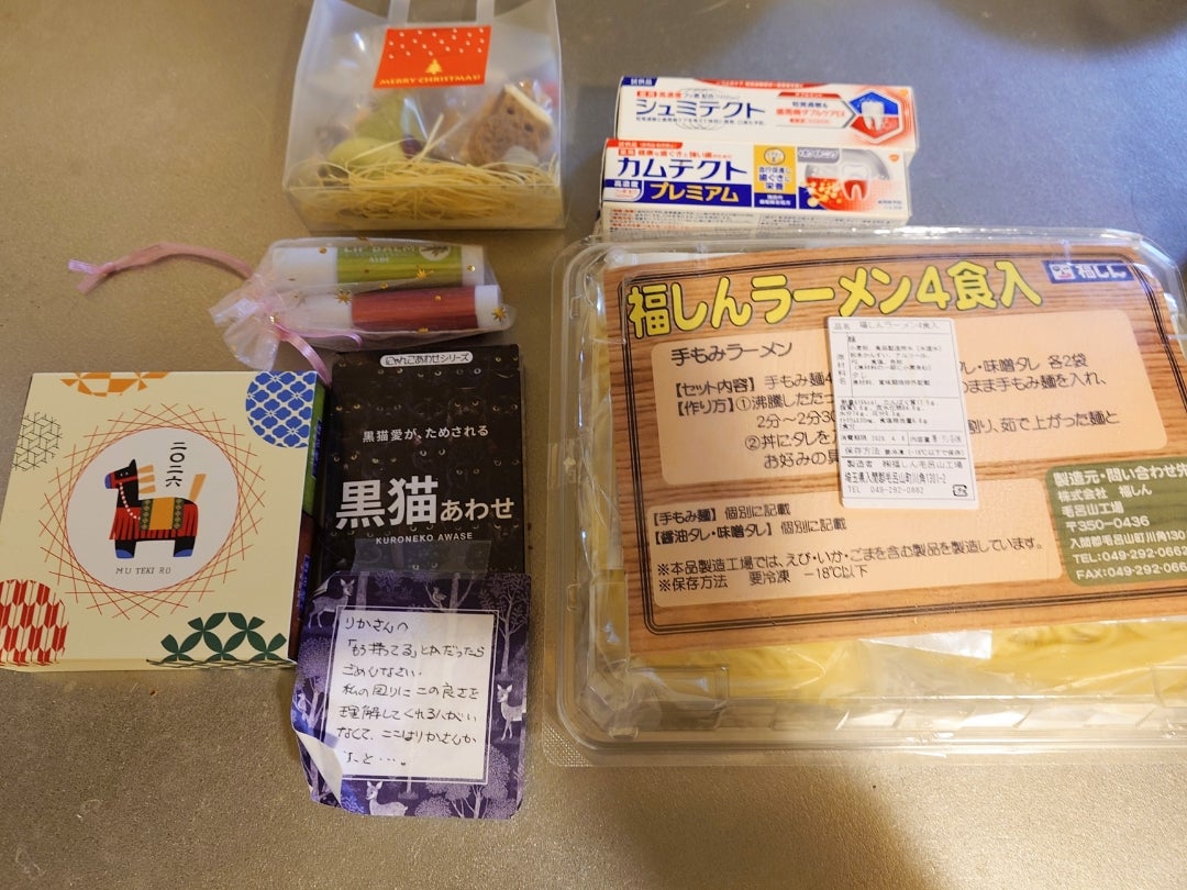 いつもご訪問&応援ありがとうございます♪ 本日‥いやもうこんな時間なので昨日ですね、で、2025年の本気の譲渡会全日程が終了しました。 1/5から日曜(&月・祝)開催は全てと、平日も3回参加したかな?東京ドーム2DAYSの翌日に声カスカスでとかもあったなw 参加頭数多そう&うちは子猫全部決まってるので猫は連れてってないのですが、暖炉のご近所にトライアル準備的な用事があったので顔出してきました。 で、左のお菓子はノエルのFさん上のお菓子とリップクリームは黒猫あわせはねこけんメンバーHさんラーメンと歯磨き粉はあすぱぱ。 行きより帰りの方が荷物が多いじゃないかー( ;∀;)皆さんありがとう( ;∀;)♡ さて。1年間本気の譲渡会出させてもらったお礼にIZさんに御神酒を捧げてきたのですが‥『ニャンこまルームの2025年本気の譲渡会ファイナル、結果はいかに』2025年本気の譲渡会ファイナルニャンこまルームからは7匹が参加しましたまず最も譲渡しやすいと一般的に思われるお虎ちゃん、つらら丸、雪丸くんはあまりにも強固な…ameblo.jp ここがもしなかったら、こんな風に良い空気が流れる居心地の良い空間じゃなかったらって、やっぱり思うわけです。譲渡会って主催者の"色"が出るものだと思うし。だからやっぱりお世話になって
