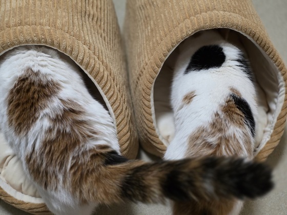 リリララの猫ベッドを新調。カインズで2,480円。リリララには、この形がベスト♪新しいモノでもOKなララは、早速寛いでるけれど、リリは「やだー!!」と逃亡。その後・・↓室内カメラで観察。ララは気に入った様子。しばらくして・・リリも真似っこして入ってた^^今年最後の可燃ゴミが31日(水)なので、その日に古いベッドを出そう。めっちゃ○まる。エアコンは付けてるけれど、掃除中、換気してたから寒かったんだろうね。ごめんね。エアコンの温度上げましたよ。