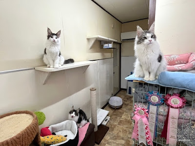 <はじめておいでの方へ>メインクーンキャッテリーCAVALLINOへようこそ。日々の出来事や子猫情報などを綴っています。大家族ですので、わが家の家族紹介No.1とNo.2をご覧下さい。ペトハピ 太鼓判ブリーダー に掲載されました。クリックすると見られます。年末ぎりぎりだったのでご報告が遅くなりました。子猫部屋から遊びに来ていたロキとオーディン。賑やかで楽しくしていましたが・・・・・さすがにみんなこのまま置いておくわけにはいかないと。「いいよ、別に」いや、あと数か月でみんな同じ巨猫になるし。ロキが卒業していきました。やんちゃで甘えん坊なのですがちょっとシャイだから・・・様子を見ていたけれど大丈夫そうなのでお知らせを。頑張れロキ。そして・・・・・・ロキの兄妹のルル。こちらはシャイで小柄。でも、芯はしっかり者。海外に行く可能性もあったのですが、遠くへ行くにはシャイだからとお断りしました。近くの方がダメだったら帰ってこられるし。こちらも順調に馴染んでいるようです。(大型犬にケンカを売りつつ(笑))こんな光景が見られないのは寂しい。でも、あなたたちは幸せの種。大きな花を咲かせてね。うちで暮らしたことを少しでも覚えていてね。 ランキングに参加しています。バナーを2つポチッと押していただけると嬉しいです。頂いたコメント