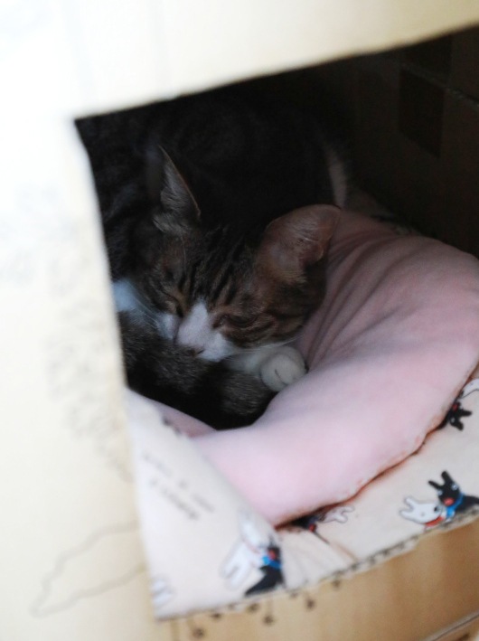リビングに設置した姐さん専用ハウスでしたが姐さんの残り香好きなユウが空くとすぐに借りてしまい借りすぎると姐さんがしばらく使わず…。