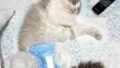 琥麦の冬毛でまた少し毛色が変わったようです。心なしか、足の指先の白地が少し広がっているような…。ゃぃのゃぃ。三毛ではなくて七色の毛色ゃぃ。七色は言い過ぎですがサバ系以外全部ある感じです。背中はサビに近いんですけど、黄色部分がゴールドに近い明るさになってきました。そして顔付近はキジトラ寄り。不思議です。子猫時代は毛がふわふわなこともあって正統派ムギワラに近いものがありました。背中にも虎柄がはっきり出てたんですが、こうも毛色が変わるとは。顔も成長の中で一番変わったのは毛色だと思います。今も童顔だとは思いますが、やっぱり保護預かりしたての琥麦は子猫でしたね。それにしてはずいぶんと落ち着いていました。やはり子猫の頃より白地が広がってます。加齢と共に毛色が変わるのはわかりますが、白が広がるとのは初めて見ました。喉付近のあたりが特に顕著です。そして何といってもこのニコニコ顔ですね。この顔だけはずっと変わらないでいると思います。