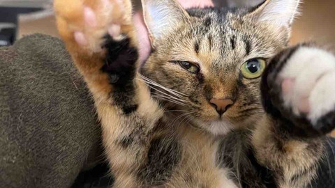 琥麦の冬毛でまた少し毛色が変わったようです。心なしか、足の指先の白地が少し広がっているような…。ゃぃのゃぃ。三毛ではなくて七色の毛色ゃぃ。七色は言い過ぎですがサバ系以外全部ある感じです。背中はサビに近いんですけど、黄色部分がゴールドに近い明るさになってきました。そして顔付近はキジトラ寄り。不思議です。子猫時代は毛がふわふわなこともあって正統派ムギワラに近いものがありました。背中にも虎柄がはっきり出てたんですが、こうも毛色が変わるとは。顔も成長の中で一番変わったのは毛色だと思います。今も童顔だとは思いますが、やっぱり保護預かりしたての琥麦は子猫でしたね。それにしてはずいぶんと落ち着いていました。やはり子猫の頃より白地が広がってます。加齢と共に毛色が変わるのはわかりますが、白が広がるとのは初めて見ました。喉付近のあたりが特に顕著です。そして何といってもこのニコニコ顔ですね。この顔だけはずっと変わらないでいると思います。