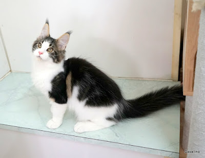 <はじめておいでの方へ>メインクーンキャッテリーCAVALLINOへようこそ。日々の出来事や子猫情報などを綴っています。大家族ですので、わが家の家族紹介No.1とNo.2をご覧下さい。ペトハピ 太鼓判ブリーダー に掲載されました。クリックすると見られます。ファーファっ子たち生後5か月になりました。オーディンラーラ(Never say die)あきらめるなって言う意味の名前です。オーディンもお母さんよりはまだ小さい。この写真は大きさ比べではなく・・・・・えっと・・・・横にリュリュがいます(笑)リュリュの名前はNever ending story鼻の周りに柄がつくのがずっと続いているので(笑)トントン→にゃあにゃ→ファーファ→リュリュと。先月とあんまり変わっていない大きさかなあ?こう見るとちょっと大人っぽくもふっとしてきた気がします。大きな子がいっぱいいるから、いつまでも小さく見えちゃう。こいちゃんたちと比べるとオーディンは小さい。でも、こいちゃんたちもカメ吉と比べると小さい。目が・・・・おかしくなりそう。 ランキングに参加しています。バナーを2つポチッと押していただけると嬉しいです。頂いたコメントは楽しく拝見させていただいております。ブログを書く励みになっていますが、個別にお返事する