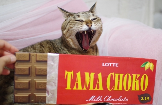 ロッテのホームページでビックなガーナチョコを無料でプリント出来ますよ。作ってみました。チョコ『あたちのチョコよ~~名前ついてる』商品名も変更でき、段ボールとアルミホイルですぐ出来るよ。おもち『か弱い僕にどんどんチョコ待ってるよ』この上の写真を撮る少し前、こんな事がありました。マタタビで誘導したのです。仲良くペロペロするおもちとあんこ。その後、おもちは近くに落ちてた古いキッカーに反応しひとりケリケリしてたんです。あんこはペロペロしまくってて・・・その後何があったか、想像できますよね(笑)はい。やっぱりいきなり来ましたね。あんこを追い出し独り占めして2枚目のお顔ってわけですわww悪いやっちゃなー。そんな子はチョコ貰えないよ。お『僕特製チョコ食べて♪真ん中は餅チョコだよ』これだけ大きなチョコだと高そうだわー。最近チョコ買ってないけど、スーパーで見ると相当値段が上がっててビックリですね。ぷぷの様子、昨日書いた通り食欲が全然出なく呼吸がしんどそうだったので金曜は利尿剤を。5.6時間後に顔色が良くなり自力で食べだしました。(いつものウェットは×ですが)しんどさが楽になると食欲は沸くようです。薬は前の量に戻したら動きが戻りました。調子が良い時間は天袋にも昨日朝まではなんとか調子良さそうだったけど午後からはかなりしんどくなって全然動けなくなりました・・・涙食欲が全く上がらず。仕方なく利尿剤を5/1