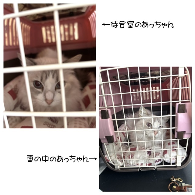 昨日は一ヶ月ぶりにあっちゃんの病院でした。不満そうなあっちゃん💦血液検査の結果は微妙に下がってたけどまだまだ異常値。それと、今回は体重減。最近、はなぴん部屋にいるから好みのカリカリがないせいかな。来月までもうちょっと体重が増えるといいな・・・☆;+;。・゚・。;+;☆;+;。・゚・。;+;☆;+;。・゚・。;+;☆;+;。・゚・。;+;☆今朝までキレイなピンクのお鼻だったのに一瞬で真っ赤に。推しの流血に、シエルパパ大慌て。ティッシュで押して止血。若いからすぐに治るだろう。☆;+;。・゚・。;+;☆;+;。・゚・。;+;☆;+;。・゚・。;+;☆;+;。・゚・。;+;☆昨日、シエルパパ車前が雪山になってたので除雪機稼働。音にビックリしてるまぼandこりゃる。こりゃるちゃん真剣。除雪機音がやっとしなくなった時の階段のみにゃさん。ホントはモネちゃんもいたんだけどはなぴんが撮影しようと思ったら降りてきちゃったんです(´;ω;`)俊敏な動きができないはなぴんばあさん(-_-;)今朝はジャラシ遊びをしてると出会ってしまったふたり。怒りながら逃げるろぜちゃんと強気なモネちゃん(笑)オルくんはマイペースに遊んでます。モネちゃんも遊んでたけど途中でシエルパパが水槽の水替えをし始めたので警戒してます。音もビックリだけどシエルパパも苦手らしい。ろぜちゃんはトンネル内でずっと怒ってます。ふ