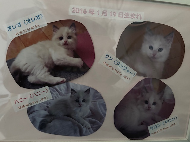 今日はふっこちゃん最後の子達のオレオ・ジン・ハニー・マロンのお誕生日です。みんにゃ!おめでとう✨ジンとハニマロから可愛いお写真が届いてるけど今日はこれから、はなぴんは病院へ行かなきゃならないのでジンとハニマロ写真は明日のブログに載せますね。大きな病院だから時間がかかるんですよね💦待ち時間に写真編集しようかな。☆;+;。・゚・。;+;☆;+;。・゚・。;+;☆;+;。・゚・。;+;☆;+;。・゚・。;+;☆朝のみにゃさん。ほっぺたんの鼻のキズはいい感じに回復してます。モネちゃん。昨年まではお留守番の時ははなぴん部屋に入ってもらってたけど今日は自由でいいかな。こりゃるちゃん・・・ボールかかえてるような・・( ´艸`)たまたまこんな感じになっちゃったけどまだお腹はペタンコです。オルくん。昨日、毛刈りをしました。情けない感じだけど(笑)少し伸びてきたら可愛くなるんですよ。では!行きたくないけど病院いってきま~す( ´Д`)ノ~訪問ありがとうございます♪ポチっと応援クリックお願いします(*´▽`*)↓にほんブログ村ちびジン・ちびオレオ・ちびマロン・ちびハニー♡