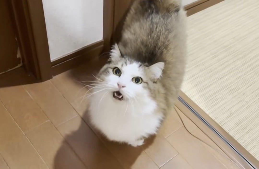 「ずっとご飯欲しいって言うてるのになぁ」と思ってる猫