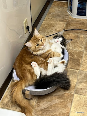 <はじめておいでの方へ>メインクーンキャッテリーCAVALLINOへようこそ。日々の出来事や子猫情報などを綴っています。大家族ですので、わが家の家族紹介No.1とNo.2をご覧下さい。ペトハピ 太鼓判ブリーダー に掲載されました。クリックすると見られます。パソコンがおかしい。どうにか書いた記事を下書きにいれ、予約投稿しておきます。もし今後更新されなくても心配しないでください。オーディンが一人になってこいちゃんが慰めている。そう優しく考えていたんですが・・・・この姿を思い出した。可愛がっているふりをして、「圧をかける」今回のはまさにそれ?この時はカメ吉とこいちゃん。そう見ると違って見えるでしょう?たぶん自分が上だって圧を・・・・・ ランキングに参加しています。バナーを2つポチッと押していただけると嬉しいです。頂いたコメントは楽しく拝見させていただいております。ブログを書く励みになっていますが、個別にお返事するのをお休みさせてもらっています。それでもいいよ、という方コメントをぜひお願いいたします。初めての方もご遠慮なくどうぞ