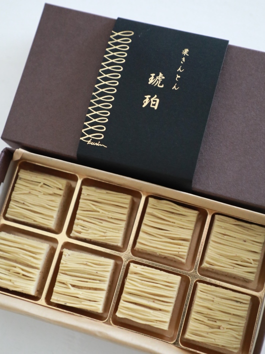 いつの間に買ったのか冷蔵庫に入っていた栗きんとんのこんな小箱も見逃さないアミ登場。ひらりと入れる深さのある箱から