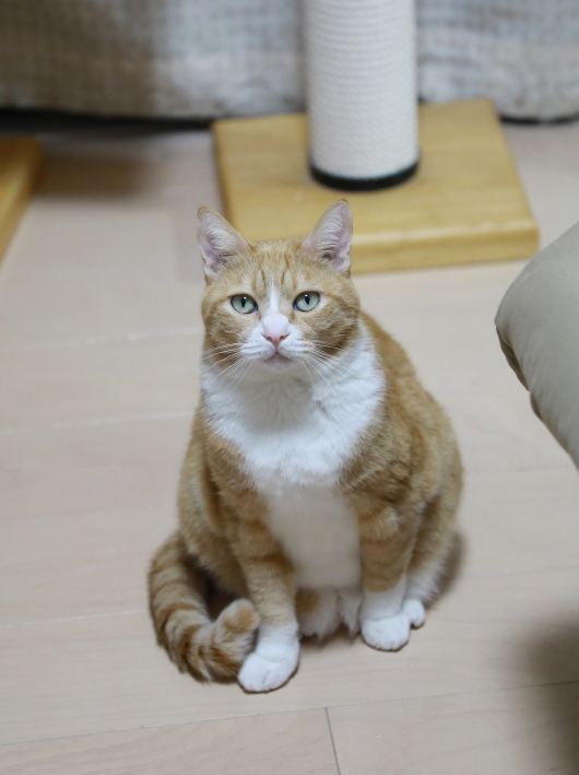 しばらくの間はまた警戒されてしまう付き添い係たけ。たけの留守中もたけのクッションではなく