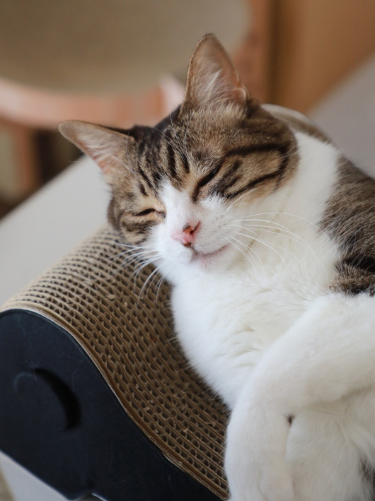 爪の引っかかり具合が最高。エッジが効いていて頬擦りしてもいい感じ♪窓辺でいつもの日光浴を終えて