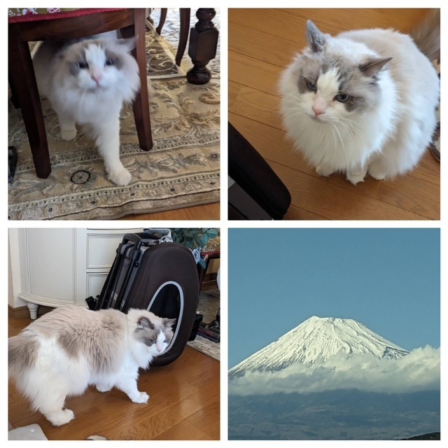 昨日お誕生日だったベルちゃん子のむにとフィリオです♪☆むに☆むに、新幹線に乗ってママさんの実家へ行ってきたそうです。新幹線から見えた富士山🏔綺麗な写真ですね~。☆フィリオ☆段ボールへそ天お気に入りスタイル☆体重は7.5kg✨身体はイケメンサイズだけどお顔はふっこちゃん( *´艸`)むにママさん・フィリオママさん、お写真ありがとうございました♪むに!ふぃりお!おめでとう~(*´▽`*)むにとフィリオのパパ(りあん)とママ(ベルちゃん)りあん去勢後から一緒に寝ることが多くなりました。むにとフィリオの兄弟の花ぽんちゃん。体重はかってないけど女の子にしてはいい体格してると思う(*´ω`*)☆;+;。・゚・。;+;☆;+;。・゚・。;+;☆;+;。・゚・。;+;☆;+;。・゚・。;+;☆最近、はなぴん部屋よりも居間でくつろいでることが多いモネちゃん。はなぴんが、午後からちょっと横になりたいな~と思ってもイスは満員。しかたなく二階に行くとついてくるオルくんとモネちゃん。モネちゃん・・オルくんに先をこされました。へそ天オルくん🎵甘えっ子してる時もわりと冷めた顔してます(笑)今朝は週末、また天気が崩れるみたいなので天気がいい時に薬をもらいに行かなきゃ💦でも、近くの病院めっちゃ混んでるので朝一番に病院に行き「午後から受付」をしてきました。
