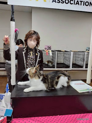 <はじめておいでの方へ>メインクーンキャッテリーCAVALLINOへようこそ。日々の出来事や子猫情報などを綴っています。大家族ですので、わが家の家族紹介No.1とNo.2をご覧下さい。ペトハピ 太鼓判ブリーダー に掲載されました。クリックすると見られます。最後に真打登場。まあねえ、空がいるからタレンティがおリボンもらえない。わかっているんですが・・・・・もう長くショーに出ていて完璧に飽きちゃっている空。「立ってやらない」う・・・・「でもおもちゃはよこせ」とほほ・・・・・「動かざること山のごとし」あ~あ・・・・・やっと座った・・・・控えじゃ楽しそうに遊んでいるんですけれど。空もお父さんのラピスもとても好みが激しい。大好きなジャッジさんだと・・・・・ね?態度違いすぎ!父息子で同じジャッジさんが好きって・・・・「空の勲章」わがまま坊主を評価してくださって感謝です。空、お疲れさま。 ランキングに参加しています。バナーを2つポチッと押していただけると嬉しいです。頂いたコメントは楽しく拝見させていただいております。ブログを書く励みになっていますが、個別にお返事するのをお休みさせてもらっています。それでもいいよ、という方コメントをぜひお願いいたします。初めての方もご遠慮なくどうぞ