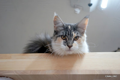 <はじめておいでの方へ>メインクーンキャッテリーCAVALLINOへようこそ。日々の出来事や子猫情報などを綴っています。大家族ですので、わが家の家族紹介No.1とNo.2をご覧下さい。ペトハピ 太鼓判ブリーダー に掲載されました。クリックすると見られます。dinoは基本的に丈夫。大きな病気をしたことはないし、めったに寝込まない。まあ、寝込めないっていうのが本当のとこですが。体温なんて絶対に計らない。見たら動けなくなるから(笑)ショーが終わった後、パソコンの調子が悪くなった。ストレスその1。ああ、トントンのこともあってストレスその2。みその手術も予定しなくちゃいけない。ストレスその3。そして出産が続いた。うれしい事ですが、心配がいっぱい。もうストレスマックス。のどが痛くなって・・・咳が出始めた・・・「?」なんだか怖いものを見るようなこいちゃん。そんな顔をしないで~。咳をしているだけだってば。みんな近寄らず高い所からこっちを見る。人間の風邪は猫にはうつらないんだよ~!とほほ・・・・・・そのあと熱が出た。たぶん・・・・高熱。ストックしてある薬でしのいだ。「近寄りません」はいはい。パソコンも新しくなってよし!って思っていたら・・・動きがカメになっちゃって、また来てもらって・・・・その上にパパさんは1週間お出かけでいないし。き~~~!!!やっとこ生き抜いた激動の日