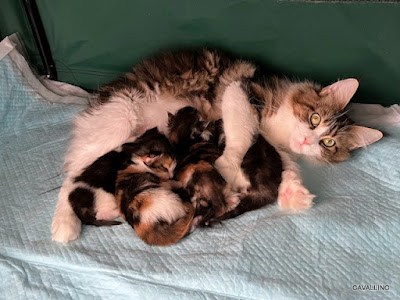 <はじめておいでの方へ>メインクーンキャッテリーCAVALLINOへようこそ。日々の出来事や子猫情報などを綴っています。大家族ですので、わが家の家族紹介No.1とNo.2をご覧下さい。ペトハピ 太鼓判ブリーダー に掲載されました。クリックすると見られます。大型猫であるメインクーンも生まれた時は普通サイズ。あっという間に大きくなっていきます。子猫が生まれて育つまでにはいくつもの山がある。まず無事に生まれて息をすること。生後1週間、10日、2週間・・・・・一つ一つを超えられて、その先があるのです。ニウニウとカメ吉の子たち生後2週間を過ぎました。手乗りメインクーンはいかが?「こんな時期からカメラ目線」「スーパーにゃん?」「フム」悩みでもある?「ぼ~~~~」ぽっくんの子と同じで、女の子はみんな三毛です。ニウニウ(エスカーダ)がいい母でおっぱいがたっぷり。ちょっと大きくなりすぎて手乗りメインクーンにはきつかった。お父さんのカメに似る?お母さんに似る?どっちにしろ落ち着きのない子たちになりそうです。 ランキングに参加しています。バナーを2つポチッと押していただけると嬉しいです。頂いたコメントは楽しく拝見させていただいております。ブログを書く励みになっていますが、個別にお返事するのをお休みさせてもらっ