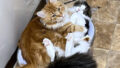 ララのしっぽに・・ティッシュの箱に付いてる、ビニールを引っかけた。ティッシュが無くなったので、箱を潰し、ビニールを剥がした。そのビニールが輪っかだったので、しっぽに掛けた。ララは、何だか分からないけれど、「モゾモゾする」という感じで、ケージの上に逃げた。その時の写真。ほんと、最近はここに居ることが多い。ここから、部屋の全体が見えるので、人間の動きを観察されてる。ジトーーーっ、と見られてたので、遊びたいのかな?と思ってね。リリの後ろ姿。