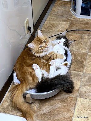 <はじめておいでの方へ>メインクーンキャッテリーCAVALLINOへようこそ。日々の出来事や子猫情報などを綴っています。大家族ですので、わが家の家族紹介No.1とNo.2をご覧下さい。ペトハピ 太鼓判ブリーダー に掲載されました。クリックすると見られます。以前この写真を載せた時・・・・・可愛がっている?それとも圧をかけている?そう書きました。こいちゃんはあんまり他の子とべたべたしないから。でも・・・・・この頃こんな姿が結構見られる。「なんだよぉ~、見るなよ。」こいちゃんは一人でいるのが好き。それは他の子との付き合いがわからないんじゃないかって。ただ一緒にいればいいんだよ。それ以上気を使うこともない。ね?これはこれでいい感じでしょう?「ボクらいいお兄ちゃんずで~す!」う~~ん・・・・・そういう事にしておこうね。 ランキングに参加しています。バナーを2つポチッと押していただけると嬉しいです。頂いたコメントは楽しく拝見させていただいております。ブログを書く励みになっていますが、個別にお返事するのをお休みさせてもらっています。それでもいいよ、という方コメントをぜひお願いいたします。初めての方もご遠慮なくどうぞ