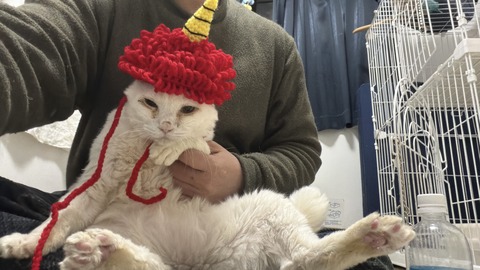 猫というか人の方が被害が大きい春のアレルギー。いや春と言わず夏とか秋も。どうもだべ。ヒンランドの鬼さんがやってきただよ。またしても節分に遅刻の鬼シャオリン。その前は早く来すぎましたね。暁璘の目鼻がぐずり出すと花粉の到来…どころか私の目鼻もぐずり出してます。特に昨年は1月から目の痒みが強く、暁璘も同時期に発生。気候変動を体で感じるようになりました。2020年頃はまだ2月末からとかの猶予があったはずなのですが。例年一番ひどくなるのが4月から7月。「一番」にしては長いですね。猫も当たり前にアレルギーがあります。麿白先生も肌の弱さと目に出ますね。あと気をつけたいのが琥麦の右目です。虹彩前癒着の症状は軽いものの、常に涙が出て茶色い涙は滲んでるのでケアは欠かせません。そこで春にどうなるか。昨年は特に何かあったわけでもないですが、成長と共にどうなるか。アレルギーって加齢とともにマイルドになるみたいな事もあり、釿汰が実際そうでした。暁璘と麿白先生にはそれを期待したいところです。
