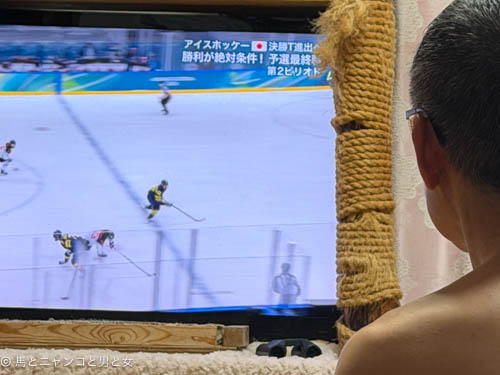 昨日敗れて後がない女子アイスホッケー 録画してたものを風呂上がりに鑑賞。昨晩ももちろん「まっちゃん」がやってきて 手に猫を握る 展開。頑張ったけど予選敗退。 平均身長8cmも違うスウェーデンチームが強かった。