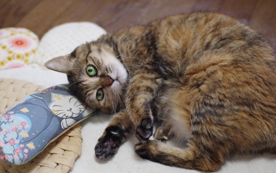 やっと暖かくなって来て昼間は猫部屋でゆっくり出来るように。キララが猫部屋のキッカーで酔っぱらってます。可愛い~ご機嫌さんでしょ。見た目、お薬が効かなくなって強制給餌されてる子に思えないのに・・・『もちろんエステも必須よー』無理ない程度に強制給餌を始めたのですが、少量で高カロリーが取れる、チューブダイエットのキドナは、どうやら合わない様で・・・サラサラに溶いても直後吐いちゃうようです。(以前直後に2回吐いて、今回も吐いたから偶然じゃなさそうです)他の流動食だと今の所吐いてないのです。何度か強制給餌を始めて・・・ストレスで隠れてしまうようになっては?と心配していたけど直後もゴロゴロ甘えてくれています。(でもやっぱりやろうとすると嫌がるので嫌なのは間違いなし)今困った問題は、あんことの関係です。空気の読めるあんこだったのに、ぷぷの体調が悪化した頃から急にキララを目の敵に。見つけたら速攻止めてるのですが、見つけるのが遅いと押さえ込むくらいの攻撃するんです。あんこの前でキララを優先して可愛がって見せつけてるのですが・・・うーん。おもち君は、最近やたら強いあんこにやられっぱなしです(笑)女番長(長女)のぷぷが居たから女子バランスが保たれてたのかな?と思いました。ぷぷが天使になった事、ブログを見てない人は知らないので動画にしました。ササミ釣り、ポット乗り、お仕置き、水飲み場の動画も入っています。