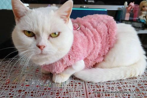 デスク前に陣取るラム。主の邪魔をしたいみたいですが、今回はこの人形の服を作ってみたいんですよぉ💦推し活に付き合って小さい服を作っていたら、短時間にできるし楽しくなっちゃったので。鎖編みでスタートして、2段目から増減なしの細編み。胸のところから下方向に編んでます。今回、ちょっとカメラを首から下げて撮っているのですが、スイッチが入っているかよく見えなくて、途中写ってませんでした。ウエストから増し目しながら中長編みで、糸を替えながら編んでます。このもこもこの毛糸は小さい物作るには不向きでした。裾の最後の段は銀糸で編みました。肩の部分を後から編みます。肩ストラップを編んだ後、そこにパフスリーブを編み足します。装飾ビーズを手芸ボンドで貼り付け、こんな仕上がりになりました!豪華だけど、ちょっとくどかったかも?!↓Youtubeショート動画小さい人形なので、かぎ針編みであっという間に2種類編めました。撮影方法を変えて、別のドレスを編みます。薄いピンクで鎖編み20目作り、輪にします。先程のドレスは背中にボタン止めするよう開きを作りましたが、体が細くて開けなくても着られたので、今回は輪にしました。そして、今回はウエストから上方向に編みます。肩ストラップまで続けて編んで、白い毛糸に替えて袖のようでケープのような物を編みます。この白い百均の毛糸は撚りが甘くてスゴく編みにくいです。ウエスト