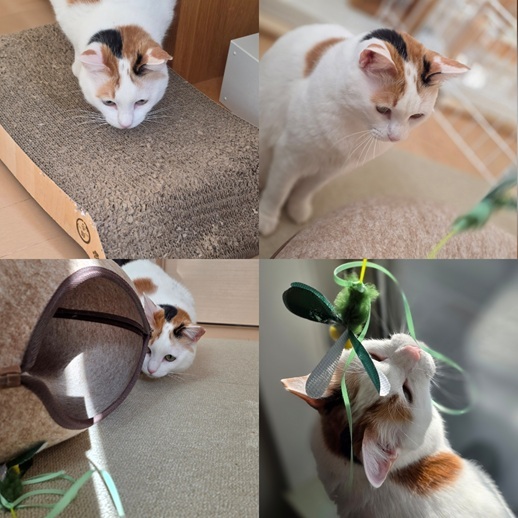 昨日に引き続き・・リリが一通り遊んだので、次は、ララの番。動いてる写真が少ないけれど、ララの方が、スイッチ入ったら大変で(^_^;勢いが凄いから、こちら側が、遊びに巻き込まれて怪我しないように注意を払うくらいw人間に対して、リリララは噛んだり引っ掻いたり一切しないんだけど、遊びに巻き込まれ怪我することがあるのです(^_^;凄いパワーなのだ。。チラッと写ってるピンクのは~?また明日~♪