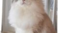 ねこ画像ぼやけたガラス σ(^^;)のカメラの腕が悪いのではない。昨日降った雪が融けて屋根から落ち 強風で煽られガラスに付いた水滴が再凍結しているのだ。