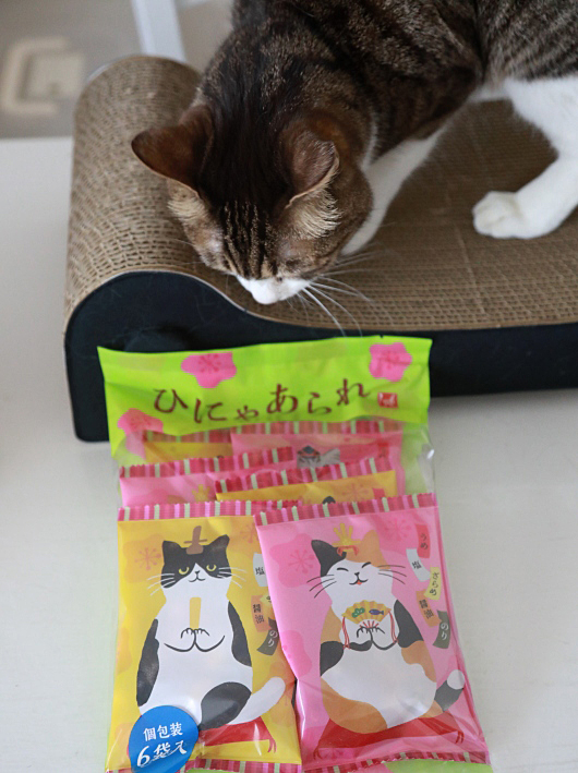 購買部長たけがだいぶ前に買ってきてあったひにゃあられ。猫好きがつい買ってしまう猫雛パッケージ。ひなまつりにはどの雛を飾ろうかと思っているうちに