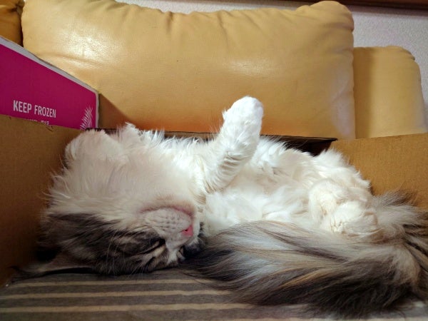 こんにちは コストコの空き箱で寝ているシンディです最初はちょっとひねりを入れた感じの寝方でしたが しばらくするとこんな格好に 万歳寝♡ このお嬢さん こんな寝方しているときに 私にお腹わしゃわしゃされてもお腹を猫吸いされても全く動じずそのまま寝ています 顔を手で隠し始めたので 眩しいのかな と思って近寄ると・・・起きてました。 起きてもしばらくこのままのシンディ この寝方 我が家の子達は定番なのです カイも良くドン開きで寝ていたけれど あの寝方とはまた違うのですよね どちらにしても無防備すぎる寝方に萌え~なわたしです 万歳寝が得意なシンディにぽちっと押して応援よろしくお願いしますにほんブログ村