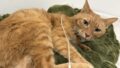 コンパクトな寝姿で眠るユウ。あったかい時はへそ天で寝ているので
