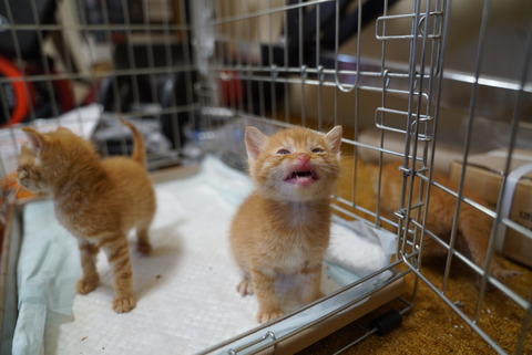 白茶系、茶トラ系に縁が深い我が家。ご存知茶トラ3兄弟の弐醐と参瑚、釿汰、チャー坊が口元だけ白い茶トラ、純茶トラは茶トラ1号だけでした。そんな中で2017年春に地元から保護預かりした保護子猫5姉弟。この時点では口元がどうなるか判然とせず。ただ、珍しいことに3匹の茶トラのうち2匹がメスでした。割合にすると2割とか聞いたことがあります。英語だとジンジャーキトゥンと言われる茶トラ。日本語にするなら生姜イモ。そしてこう見ると揚げ物みたいですね。なぜか食べ物に喩えられがちな幼猫たちです。こちらは同じ日の参瑚。茶トラは傾向として大きくなりやすい毛色ですが参瑚もここまで色が濃くなると思いませんでした。色が濃いから口元の白が際立ちます。そして里親様から頂いた巣立った茶トラの成長後がこちら。やはり口元が白くなってました。こう見るとやっぱり顔つきが女の子ですね。そしてやはり色が濃くなって口元の白が目立ってます。どこかしら白が混じるのがほとんどで純茶トラが珍しいのかもしれません。そういやキジトラも時雉は口元だけ白でしたね。