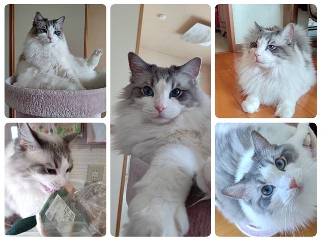 ☆桃太郎☆まぼちゃん子の桃です🍑体重は7.30kg✨お誕生日プレゼントの透明ビニールキューブ。お気に入り🎵桃の写真が来たので、ママさんの携帯直ったのかと思ったらまだだそうです。保証で届いた3個目も故障・・・(゚Д゚;)明日4個目のiPhoneが店舗に届くそうです。今度こそなんともなければいいけど💦はちみつ桃ママさん、お写真ありがとうございました♪桃のパパのりあん君。段ボール大好き♡ママのまぼちゃん。ジャラシ待ち。今日もはなぴん眠たくてフラフラ。遊んであげれなくて申し訳ない(m´・ω・`)m ゴメン…☆;+;。・゚・。;+;☆;+;。・゚・。;+;☆;+;。・゚・。;+;☆;+;。・゚・。;+;☆ほーにゃんがユニコーンを育児箱に。ノンノン、ユニコーンの足に(笑)可愛いノンノン。どうしてもスンスンの場所のお乳が吸いたくて大暴れ。(朝5時半のお乳タイム)そうなるとスンスンはゾンゾンのお乳が吸いたくなりゾンゾンは決まった場所じゃないと吸わないので3ニャンでわちゃわちゃ。ファンファンは頑張って自分の場所で吸ってますがゾンゾンとツクツクが吸い終わると違う場所でも吸ってる(゚Д゚;)可愛くねてるけどさ~・・・・はなぴんは何回も起こされてフラフラだよ。早く離乳食始まらないかな。体重測定をしてからミウライパパさんからいただいたブランケッ
