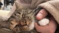 ひとり遊びを終えた猫。