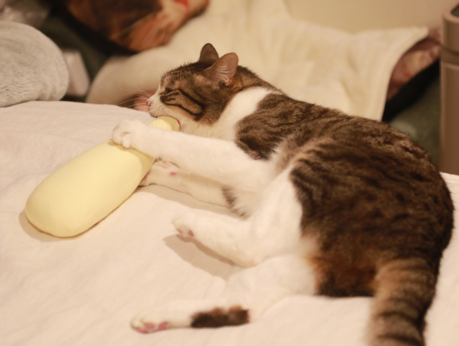 ときどき取り出してがぶりと噛んだりすり~んとしたり。またたびに大興奮。はしゃぎ過ぎてベッドから落ちそう!落とさぬように踏ん張ったもののけりマヨ、ぽとり。(しょぼーん)下僕に拾ってもらっててへぺろなアミなのでした。ブログランキングに参加しています。バナーをクリックして応援していただけると光栄なのです。