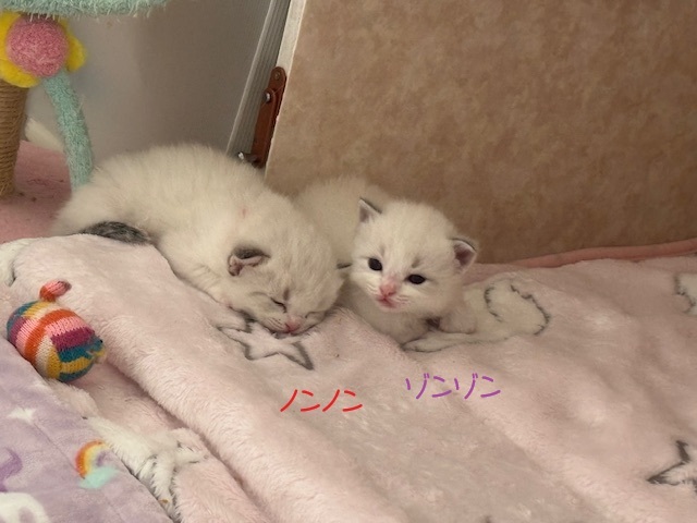 子猫達、寝ててもはなぴんが居たら集まる集まる🎵はなぴん、正座だと腰や股関節が痛むお年頃だから(笑)縮こまって横になってます。(集まってくるのは、はなぴんだからってわけでもなくほーにゃんやよーにゃんでもみんにゃ集まってきます)わちゃわちゃ💛こりゃるちゃんが来てお乳タイム。やっと飲み終わったところ。こりゃる枕で寝てるノンノン(*´▽`*)(ファンファンとゾンゾンはまだ飲んでます)みんにゃ寝た頃、はなぴんの所に来たツクツク。コロンコロン転がって甘える💘耳がなくても超可愛い✨今朝は、みんにゃ飲み終わってるのにツクツクだけ戦ってます。丸見え~~~(笑)ゾンゾンは静かに寝たいのか育児箱の隅へあんよがセクシー✨・‥…━━━☆・‥…━━━☆・‥…━━━☆・‥…━━━☆☆スンスン☆☆ノンノン☆☆ゾンゾン☆☆ファンファン☆☆ツクツク☆ツクツクは一番写真がとりやすい~(*´ω`*)赤にゃんの時は「文句タラ男」だったのに今は全く言わなくなりました。☆;+;。・゚・。;+;☆;+;。・゚・。;+;☆;+;。・゚・。;+;☆;+;。・゚・。;+;☆段ボールを片づけようとしたらまぼちゃんが来て頑張って段ボールに入った・・・手前にははなぴんのおまたに頑張って入ってたほっぺたん(笑)あっちゃん。頑張って食べてくれてるので少しずつですが増えて